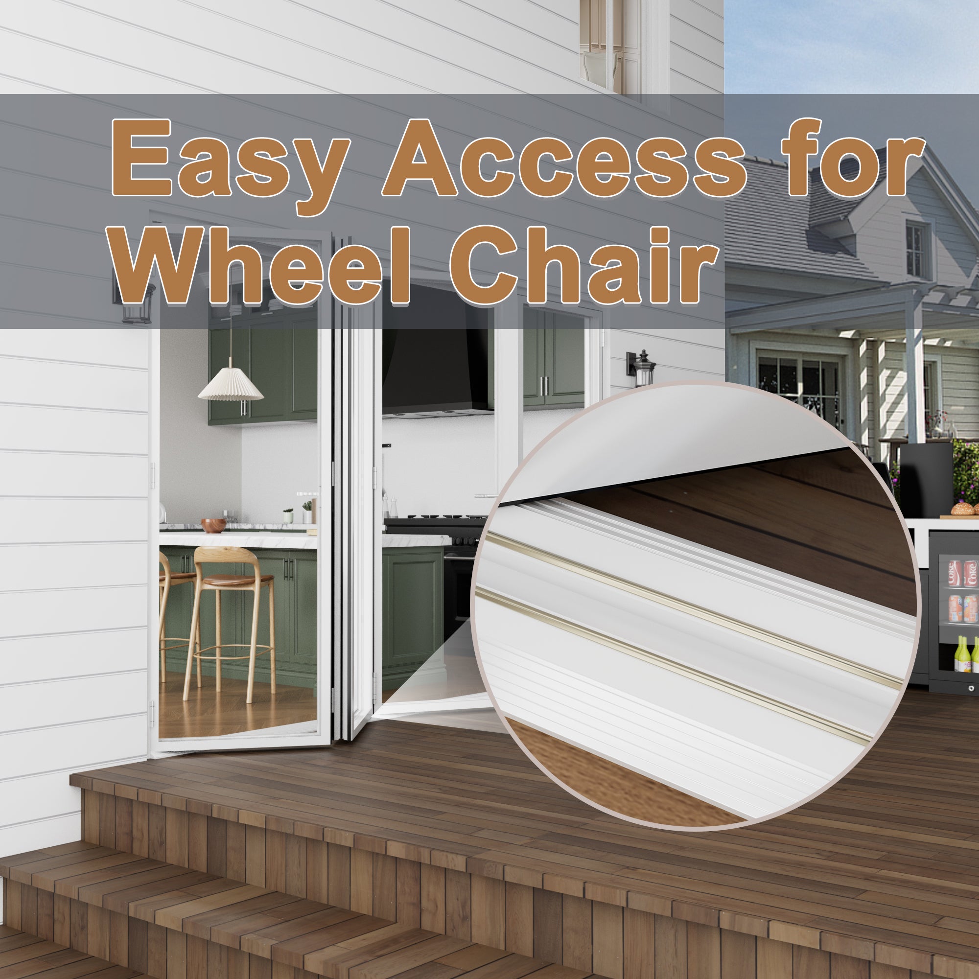 Multiple Operational Configurations:There are multiple operational configurations available for customers to choose from. Customers can choose Single Door Style, which can make the door only swing door active, or french door style, which can make the door only swing door & 1st folding door active, or partial open, which can make the door all doors Active & Stop at any position. Customers can also choose full opening, which will provide 80%+ opening to outdoor.