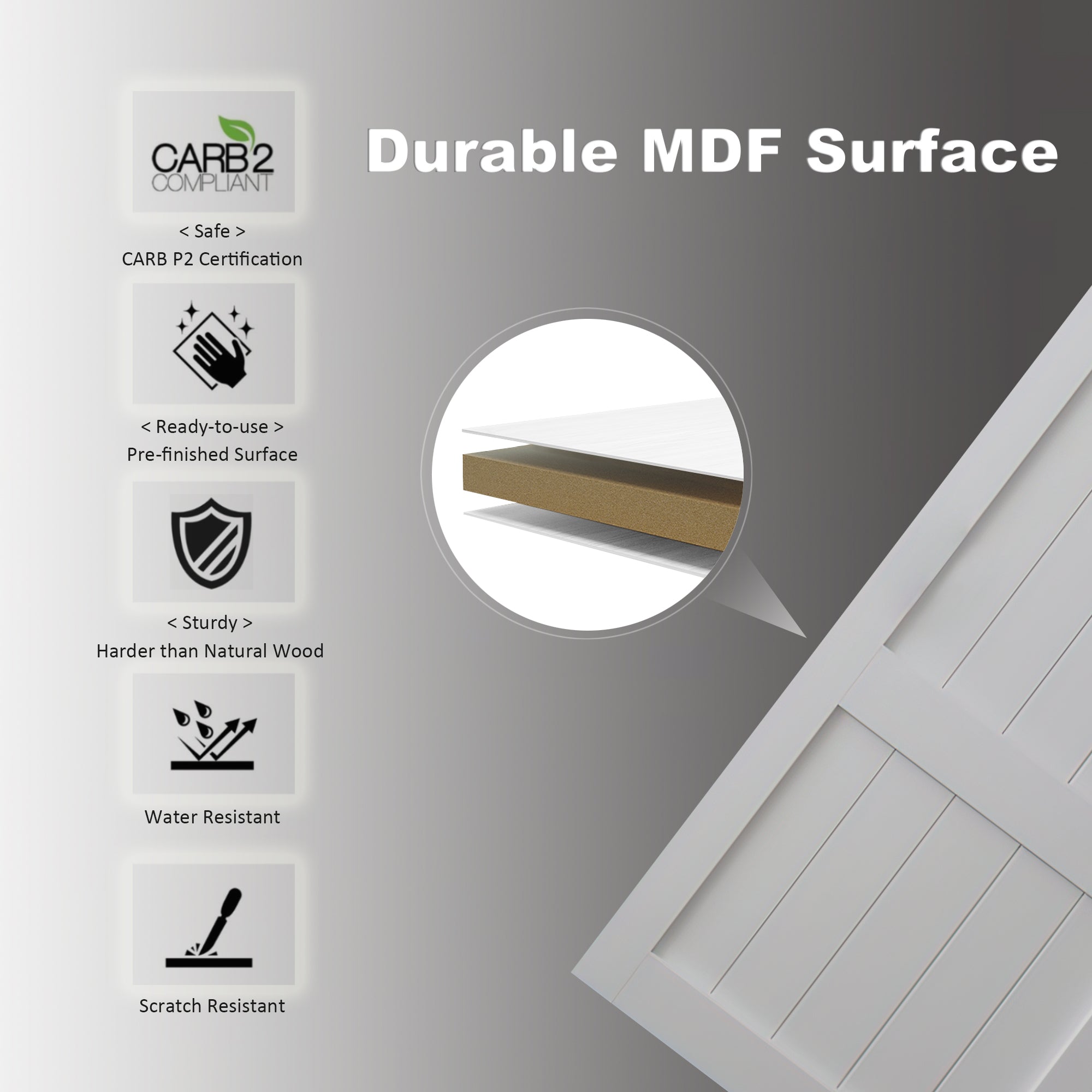 【High-quality material】 made with high-quality wood composite material (with CARB P2 certificate), it is sturdier and more durable than natural wood